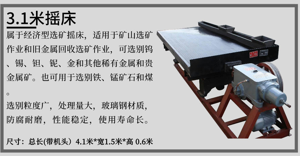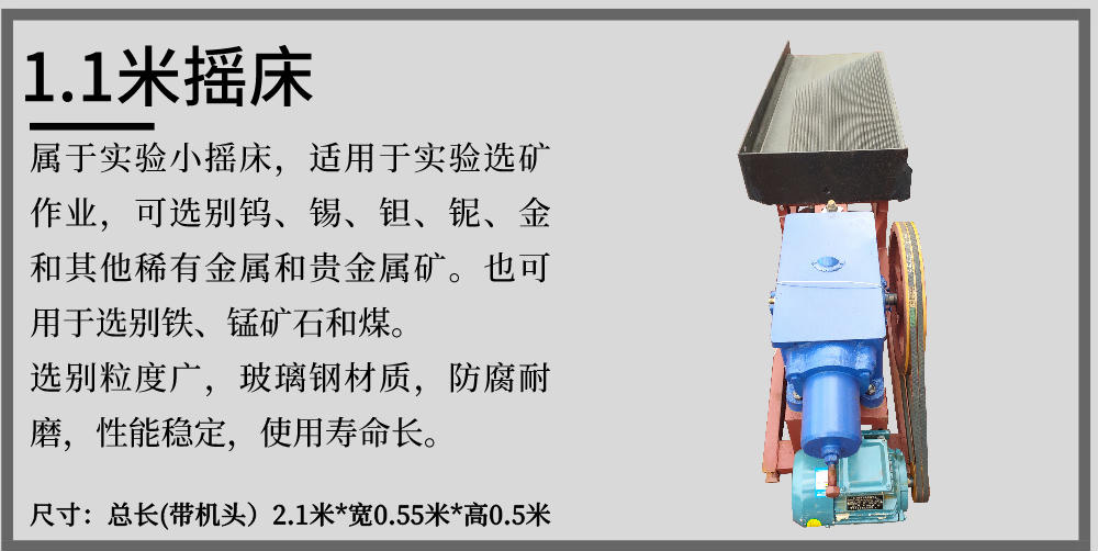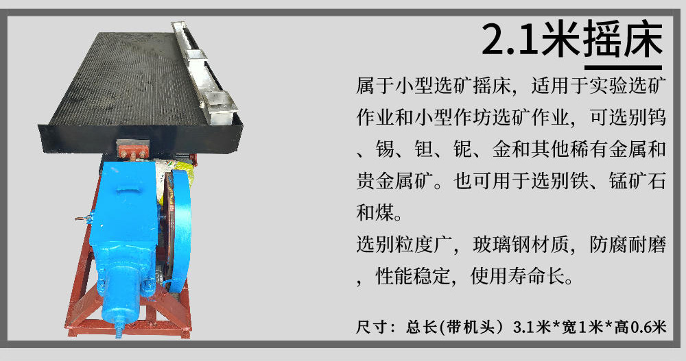 LY/6S型實(shí)驗(yàn)搖床適用于分選粒度0.3--0.074毫米細(xì)料的鐵礦、鈦鐵礦、鉻鐵礦、硫鐵礦、鋯英石、金紅石、獨(dú)居石、磷乙礦、鎢礦、錫礦、鉭礦、鈮礦以及具有比重差異的其他有色金屬、稀有金屬和非金屬礦物體。本設(shè)備具有選別過程穩(wěn)定、容易控制,給礦濃度允許變化范圍大,富集比高、回收率高,占地面積小、耗水量少,結(jié)構(gòu)簡(jiǎn)單,無需動(dòng)力,處理量大,安裝簡(jiǎn)易,操作方便,投資小見效快等優(yōu)點(diǎn)。